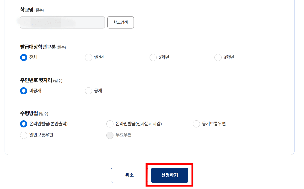 고등학교 성적증명서 인터넷발급 방법 (2016년 이후 졸업)