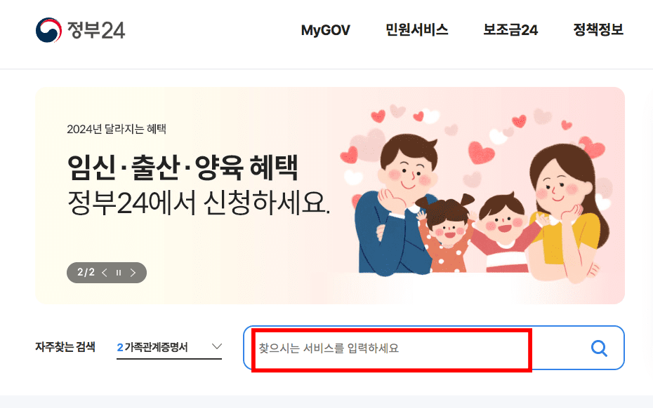 정부24는 정부의 민원 서비스, 정부혜택(보조금24), 정책정보/기관정보 등을 한 곳에서 한 눈에 찾을 수 있고 각 기관의 주요 서비스를 신청·조회·발급할 수 있는 대한민국 정부 대표 포털입니다