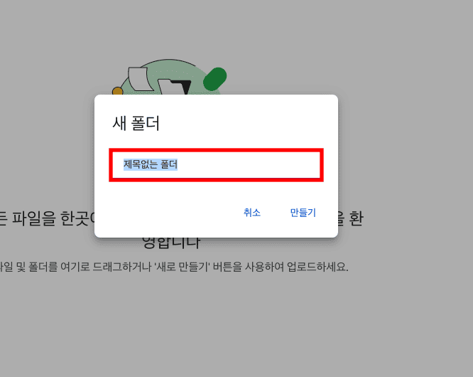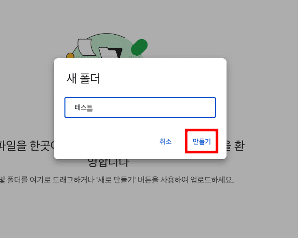 저장할 폴더를 만들어야 하니 ‘새 폴더’ 메뉴를 클릭합니다. 새 폴더의 제목을 입력하는 창이 표시됩니다. 제목을 입력하시고 하단의 만들기 버튼을 선택합니다.