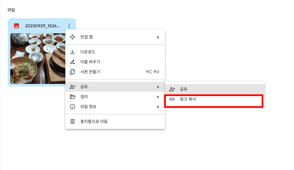 생성된 링크를 블로그나 이메일 등에 첨부하면 해당 링크를 클릭하는 모든 사람이 자료에 엑세스 할 수 있게 됩니다.