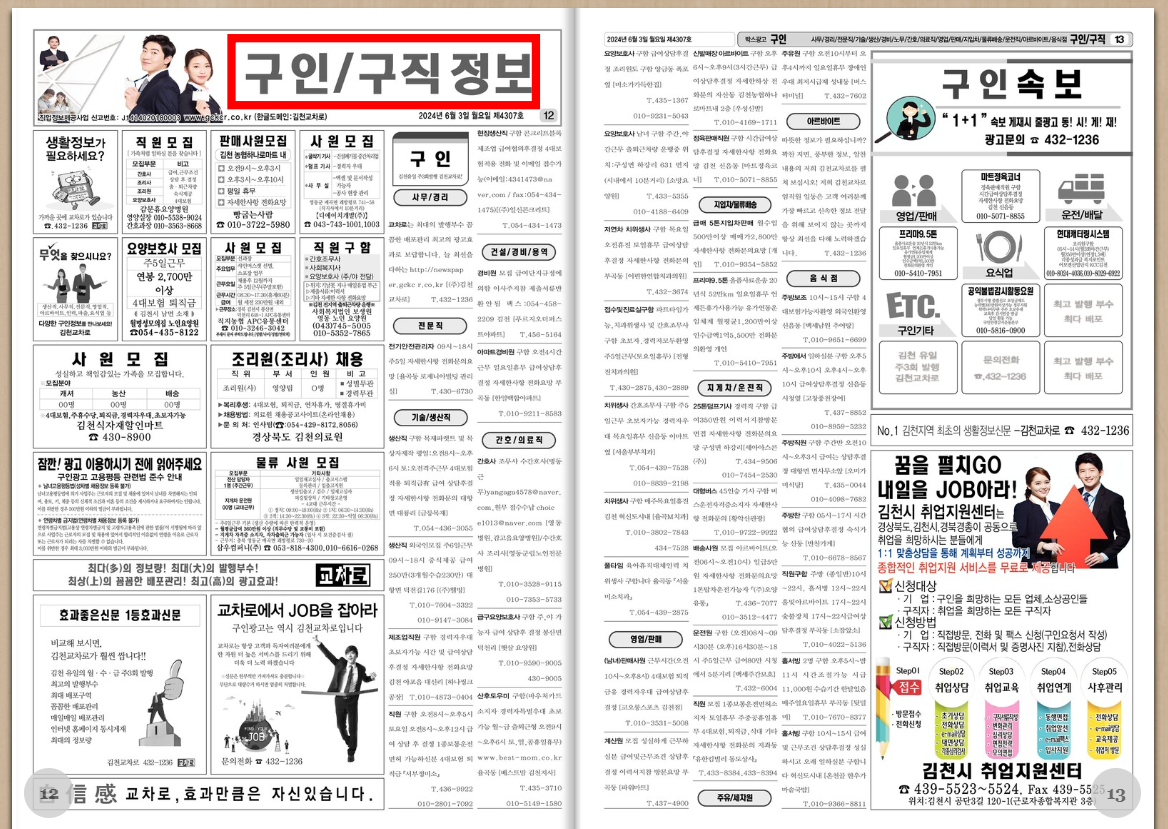 김천 교차로 구인구직 2 - 교차로 신문으로 확인