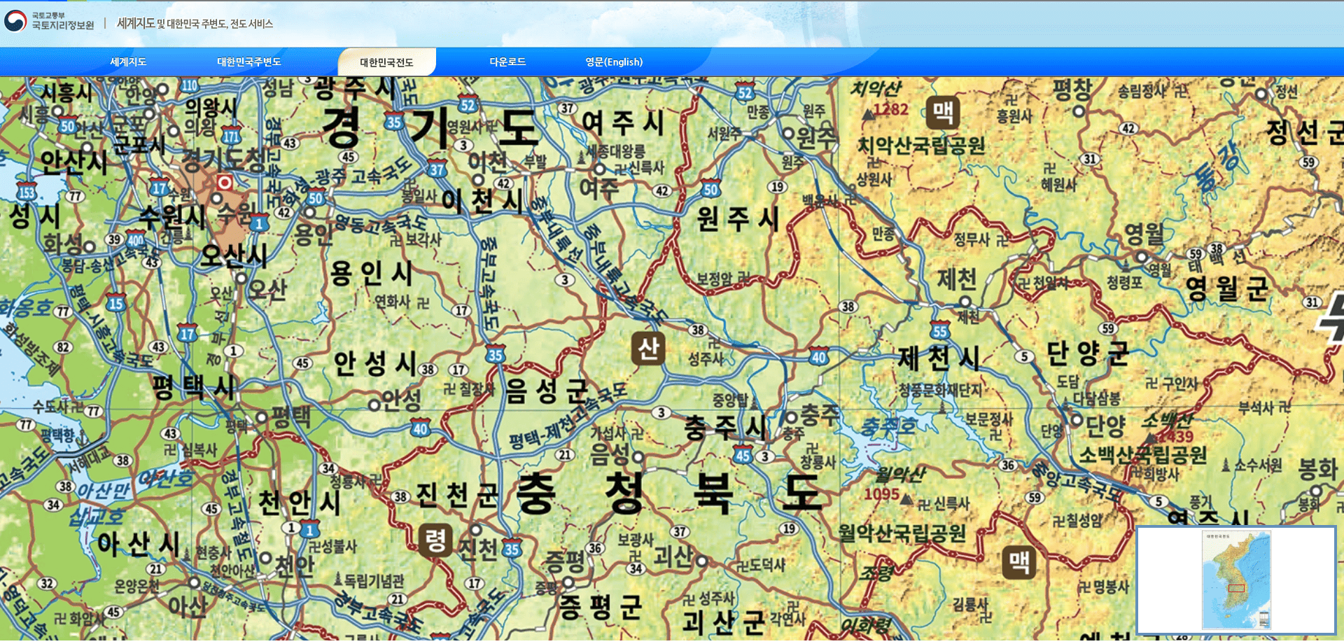 대한민국 지도 크게보기 1 - 국토지리정보원
