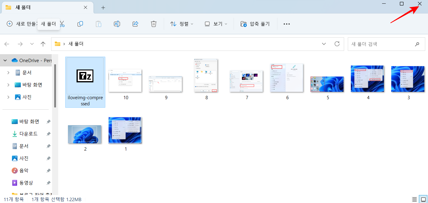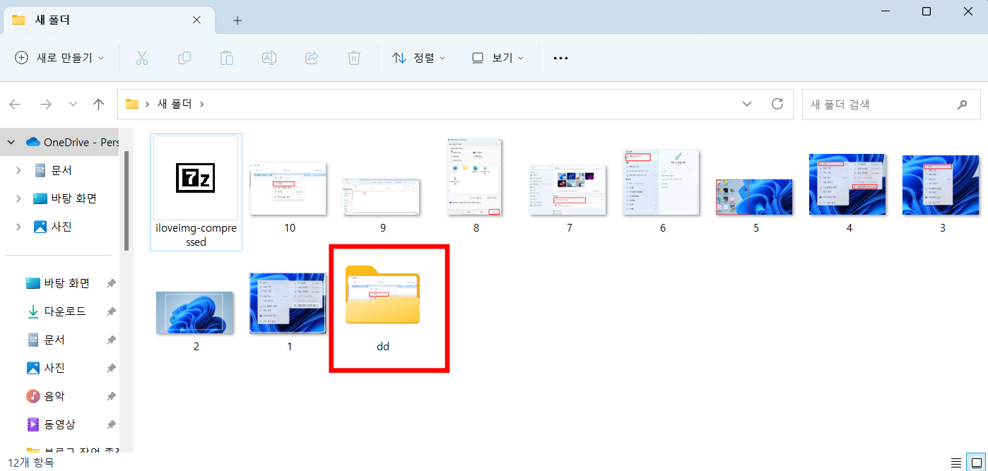 윈도우11 업데이트 이후 바탕화면으로 생성되는 작업물이 화면에 보이지 않는 경우가 생기기도 합니다. 이러한 경우에는 열었던 폴더나 바탕화면 폴더를 닫고 새로 열게 되면 사라졌던 생성 아이콘이 보이게 되는 것을 확인할 수 있습니다.