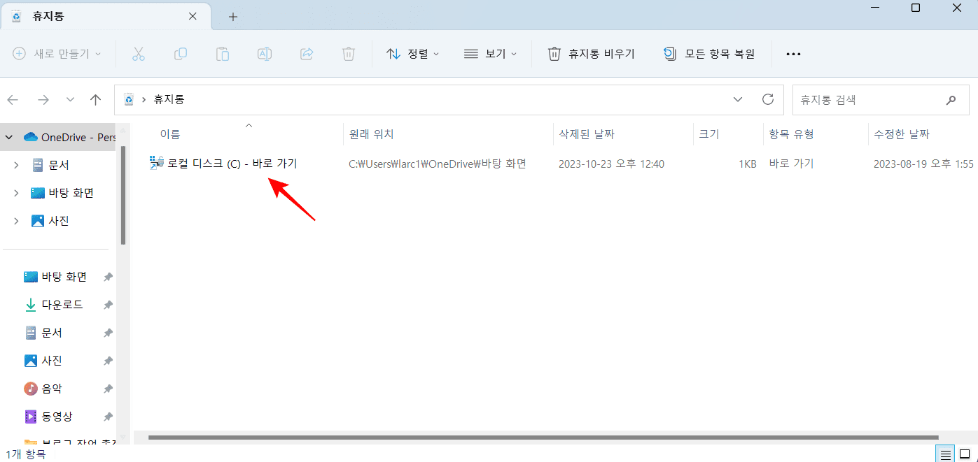 바탕화면 아이콘이 사라졌어요 3 - 휴지통 복구