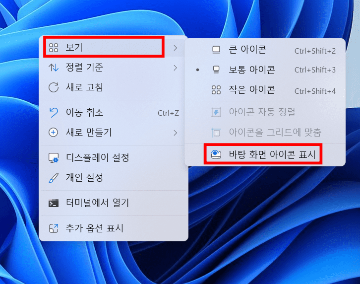 바탕화면 아이콘이 사라졌어요 1 - 바탕 화면 아이콘 표시