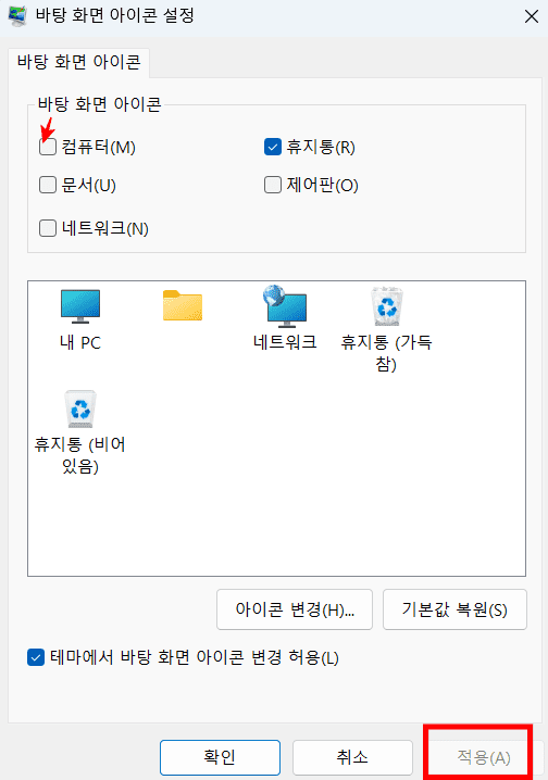 바탕화면 아이콘이 사라졌어요 2 - 기본 아이콘 복구