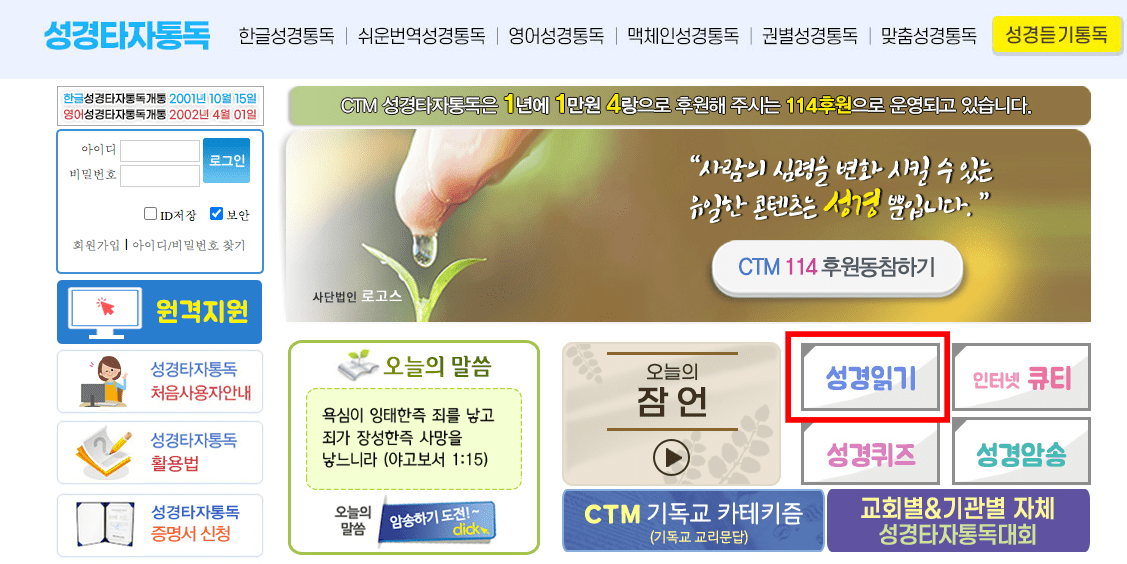 ctmbible.net,성경타자통독서비스최초제공,한글&영문타자통독,맥체인통독,성경읽기