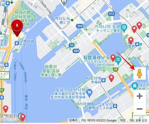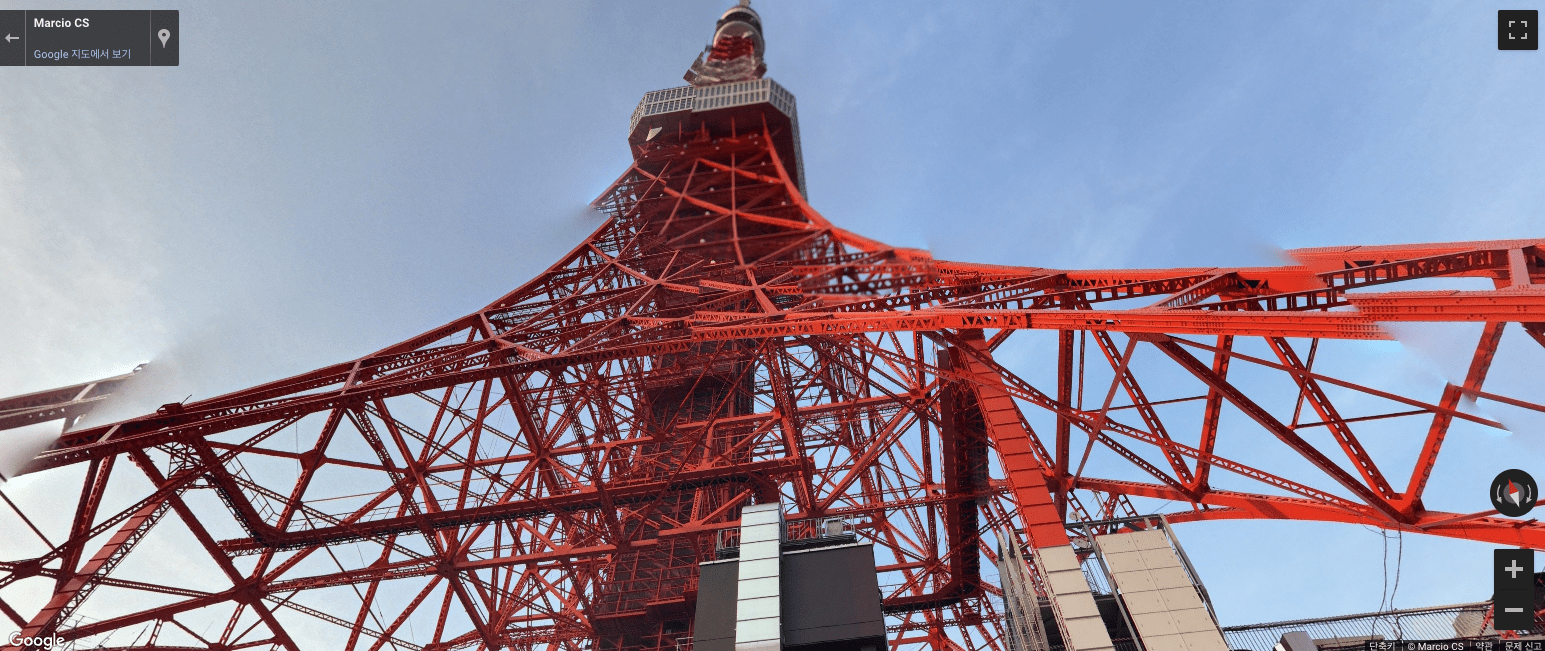 Japan Travel은 재미있는 기능을 가지고 있습니다. 우측 하단의 사람모양 아이콘을 드래그 하여 관광지에 가져가면 그 장소의 스트리트 뷰를 바로 확인할 수 있다는 점입니다. 사람 아이콘을 도쿄 타워에 드래그하면 위와 같이 도쿄타워를 한눈에 감상할 수 있습니다.