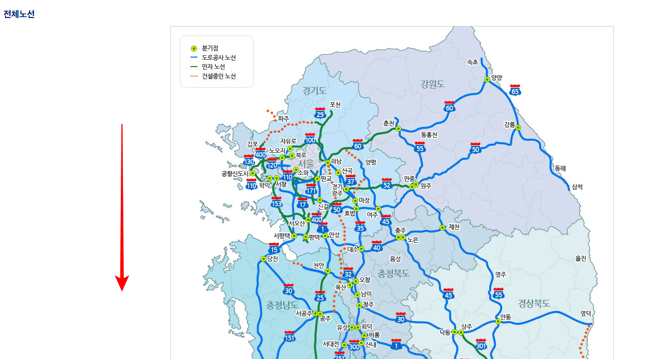 전국 고속도로 지도보기 (한국도로공사)