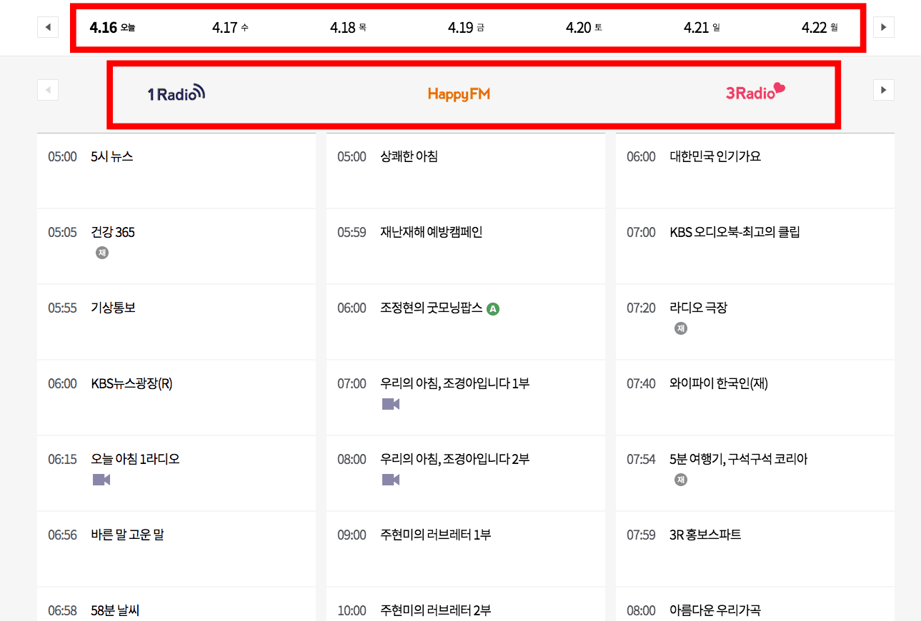 kbs 라디오 편성표는 채널별, 날짜별로 조회가 가능하니 직접 확인해 보시기 바랍니다.