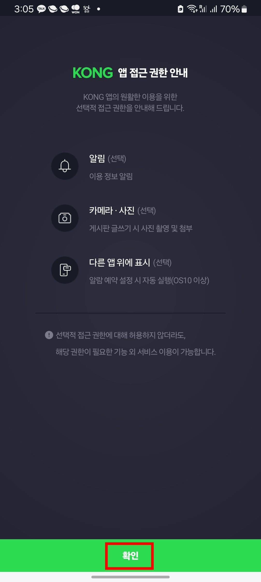 kbs 라디오 콩 어플을 실행하면 위와 같이 앱 접근 권한 아내 페이지가 표시됩니다. 하단의 확인 버튼을 터치합니다. 콩 어플 메인페이지가 보이면 원하는 채널을 선택합니다. 우측 하단의 재생 또는 뮤트 버튼을 터치하여 청취하거나 끌 수 있습니다. 화면에서 라이브 챗 확인도 가능하며 채팅에 참여하려면 로그인이 필요합니다.